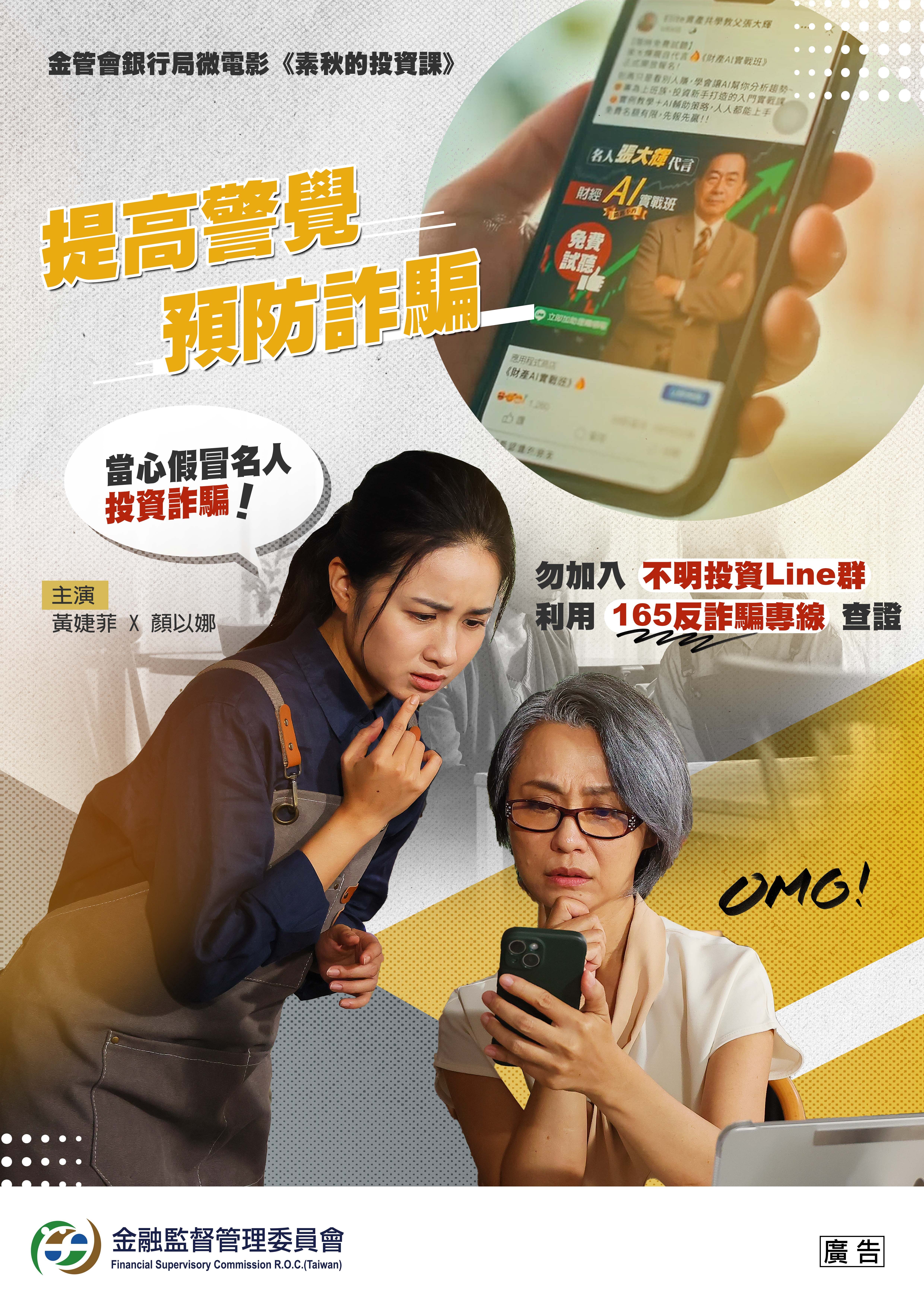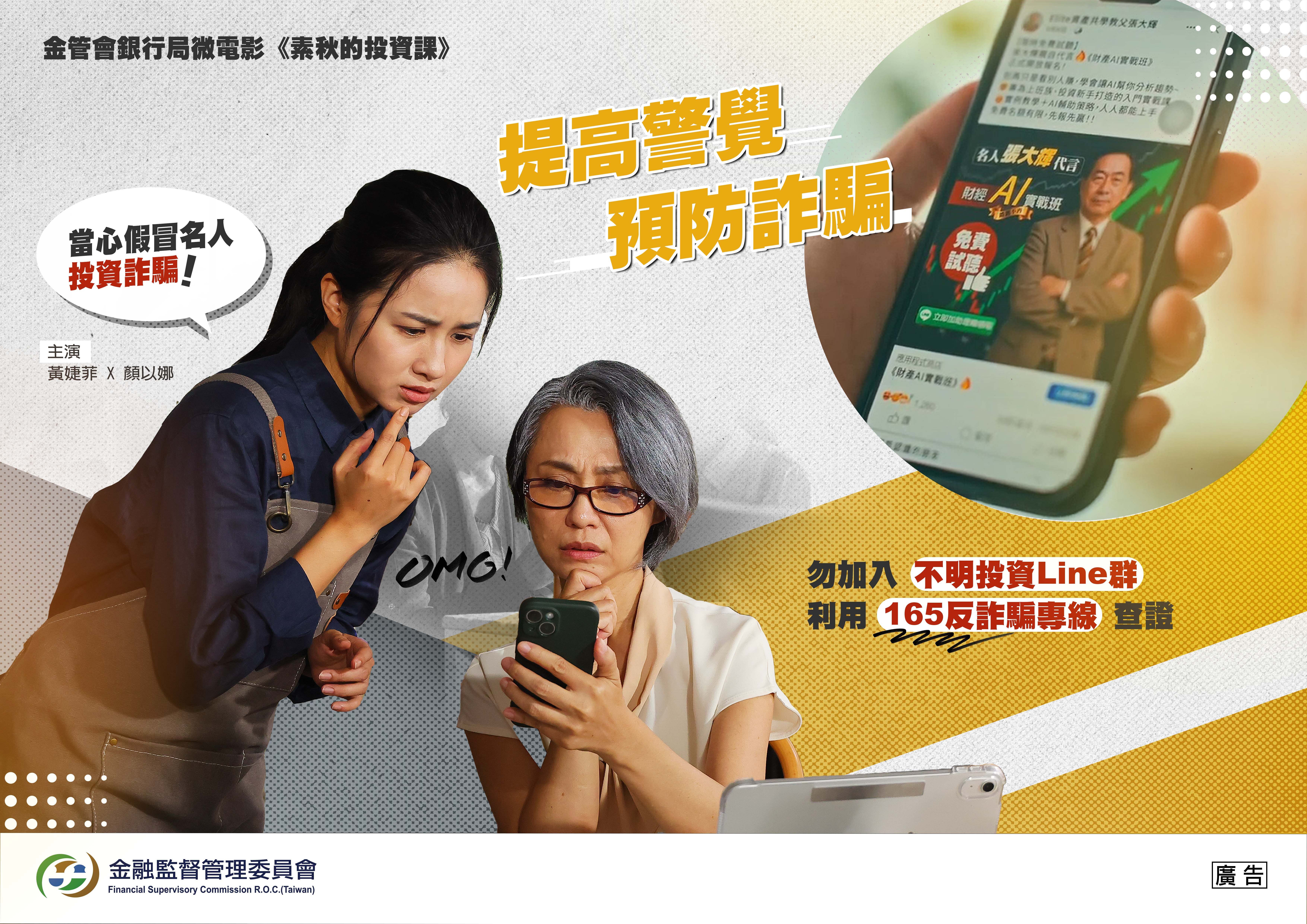 「不肖人士偽冒金管會人員名義詐騙款項,請民眾小心查證」(國語版)